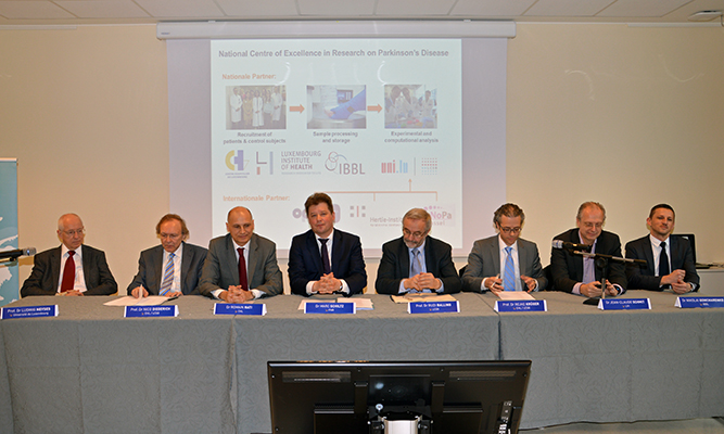 Conférence de presse le 2 avril 2015 au Centre Hospitalier de Luxembourg pour le lancement du programme de recherhce NCER-PD.
